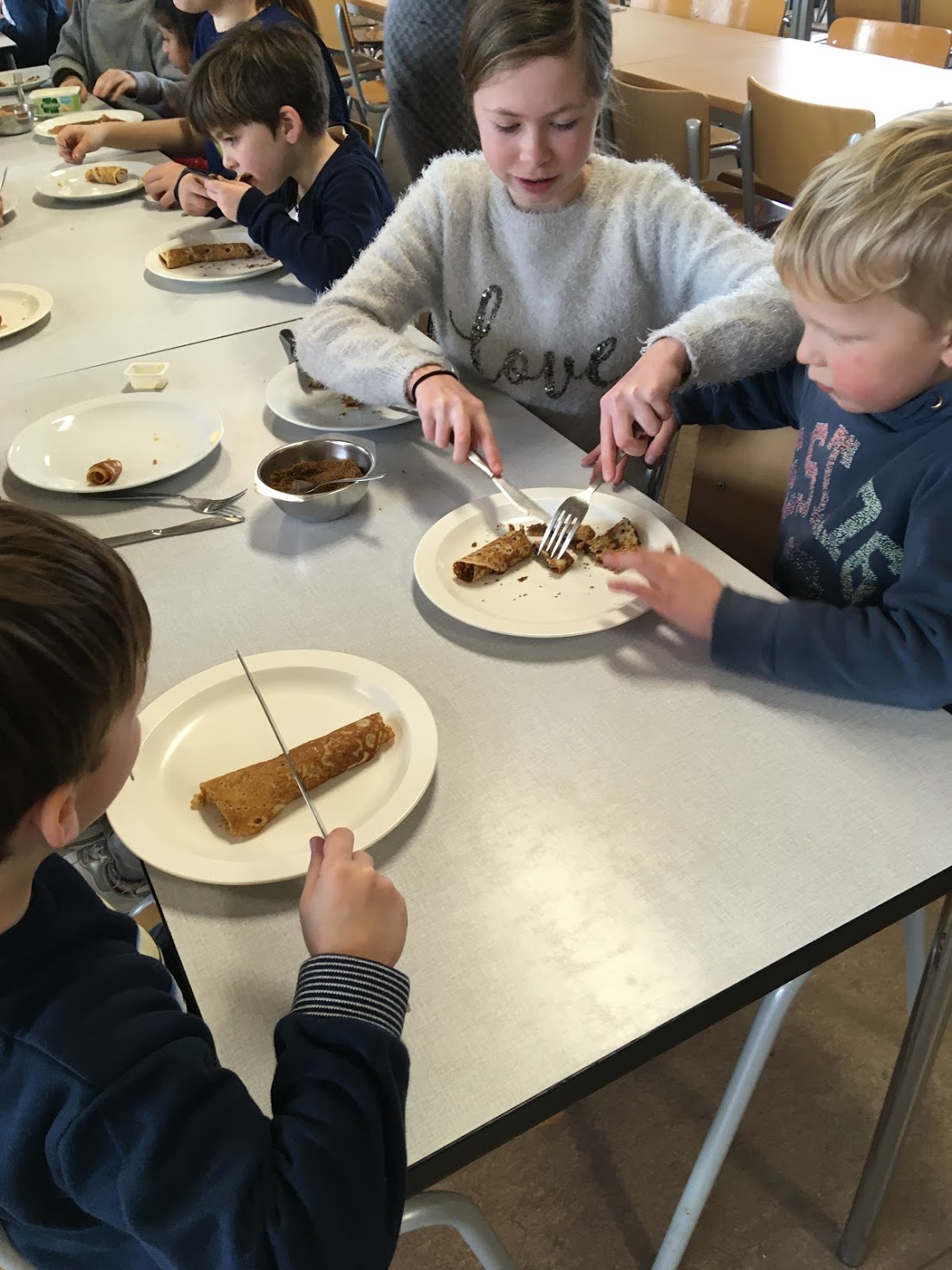 Donderdag 20 februari bakten juf Yvette (op pensioen sinds 2007) en haar team terug O-VER-HEERLIJKE pannenkoeken. dit zijn de beste pannenkoeken die er te smullen zijn.